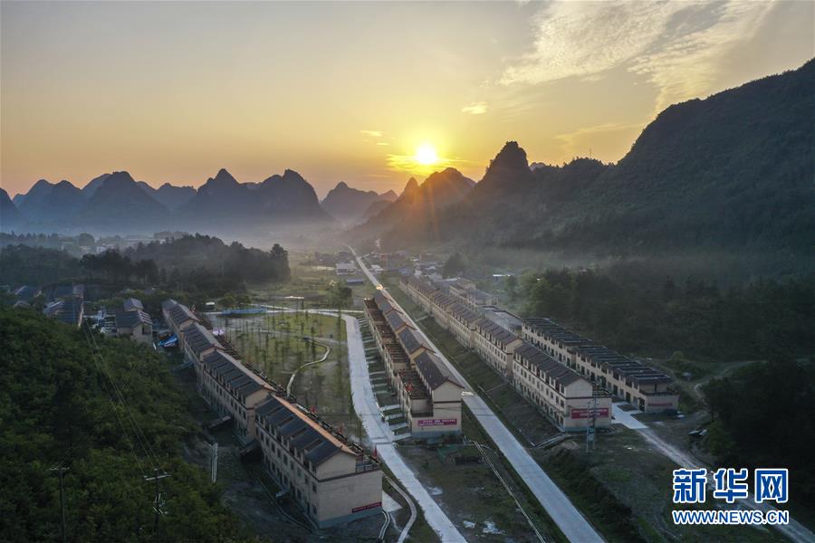 这是广西南丹县“千家瑶寨·万户瑶乡”八圩瑶寨易地扶贫搬迁安置点(4月29日摄,无人机照片)。新华社记者 曹祎铭 摄
