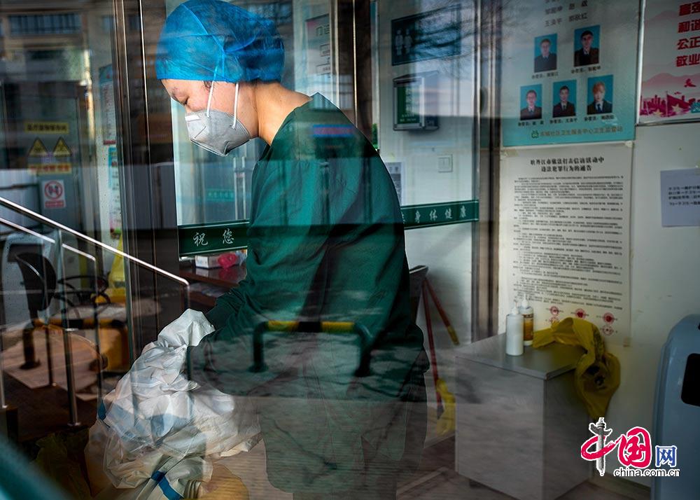 当6个小时下来,全身已经湿透,加上又渴又饿,她们连脱防护服的力气都没有了。李广庆摄影