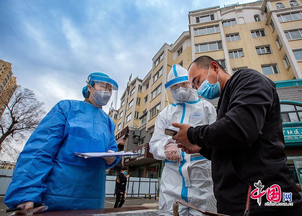 每天预约检测的人很多,她们分工有序。有的维护秩序,让人员分开距离;有的进行测温登记;有的进行采样;有的进行微机输录。小组负责人陈晨说:“组里的人都是从春节前开始一直坚守在一线的医护人员。虽然知道采样工作的危险性,“但我们是医疗工作者,这是我们的责任,再困难再危险,也要对得起我们的职业和应有的担当“。李广庆摄影
