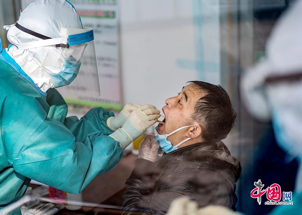 采集口咽拭子的时候,采样人员通常都要站在被检测者的正对面,因为要准确在咽部位置提取液体,很容易引起被检测者咳嗽、打喷嚏、呕吐等现象,一次一位居民因检测不适,直接把污物喷到护士于洋的面屏上,她说:现在想到当时的场景,都吃不进饭。李广庆摄影