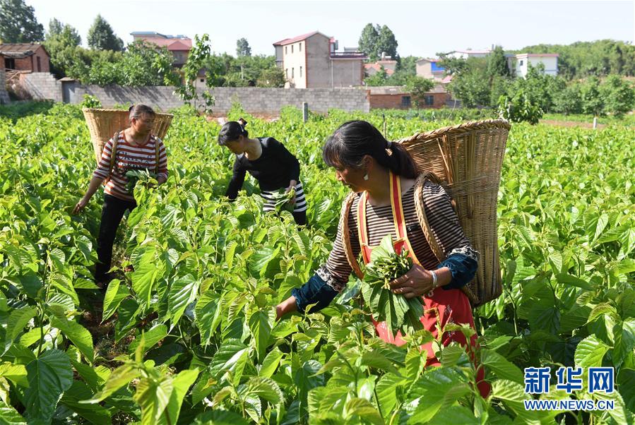 5月16日,寻甸县金所街道草海子村的农妇在采摘蚕桑叶。 云南省寻甸回族彝族自治县金所街道草海子村大力发展蚕桑等特色种养殖和加工产业,带动了当地农民脱贫增收致富。目前,该村有150余户从事蚕桑产业,大多脱贫致富。 新华社记者杨宗友摄