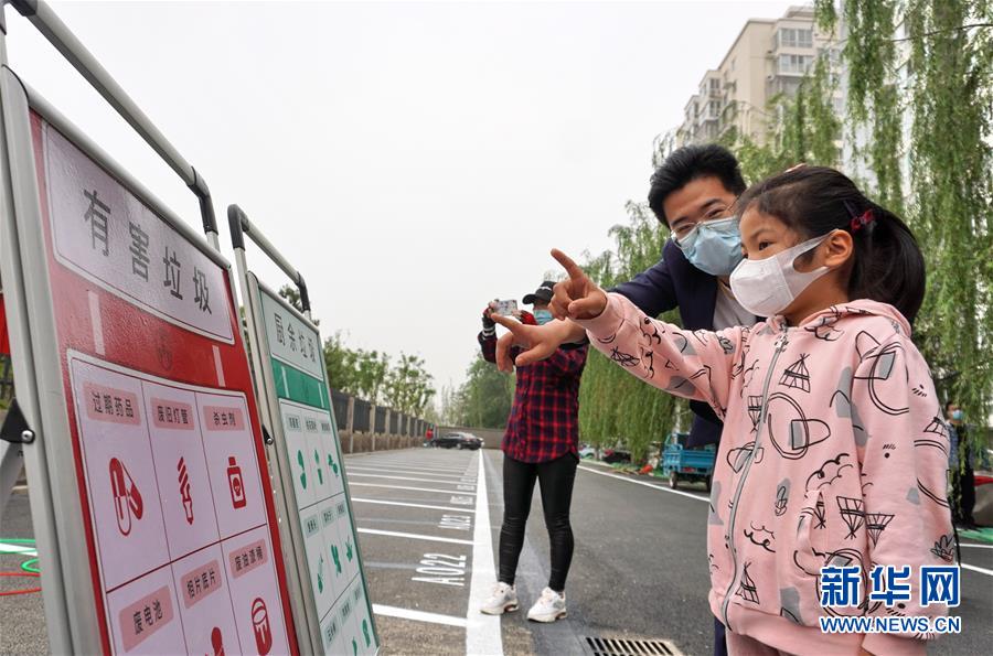 5月16日,东高地街道一名小志愿者在学习垃圾分类知识。 当日,北京市丰台区东高地街道举行“垃圾分类,文明同行”活动,开展垃圾分类手册发放、垃圾分类知识比赛、学生志愿者培训等活动,200多名居民、学生和志愿者参加活动。 新华社记者李欣摄