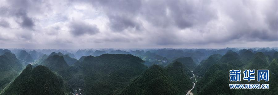 这是广西大化七百弄国家地质公园(5月15日摄,无人机全景照片)。 广西大化七百弄国家地质公园位于大化瑶族自治县西北部,是发育较为典型的高峰丛深洼地地区。在地质公园范围内,有海拔800米至1000米的山峰5000多座,千姿百态的深洼地1300多个。 新华社记者 曹祎铭 摄