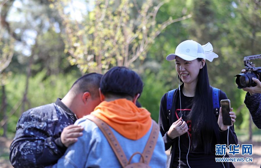5月6日,在沈阳市青年公园,王蕾蕾(右)和爱人给残障儿童拍摄公益短片。新华社记者 杨青 摄