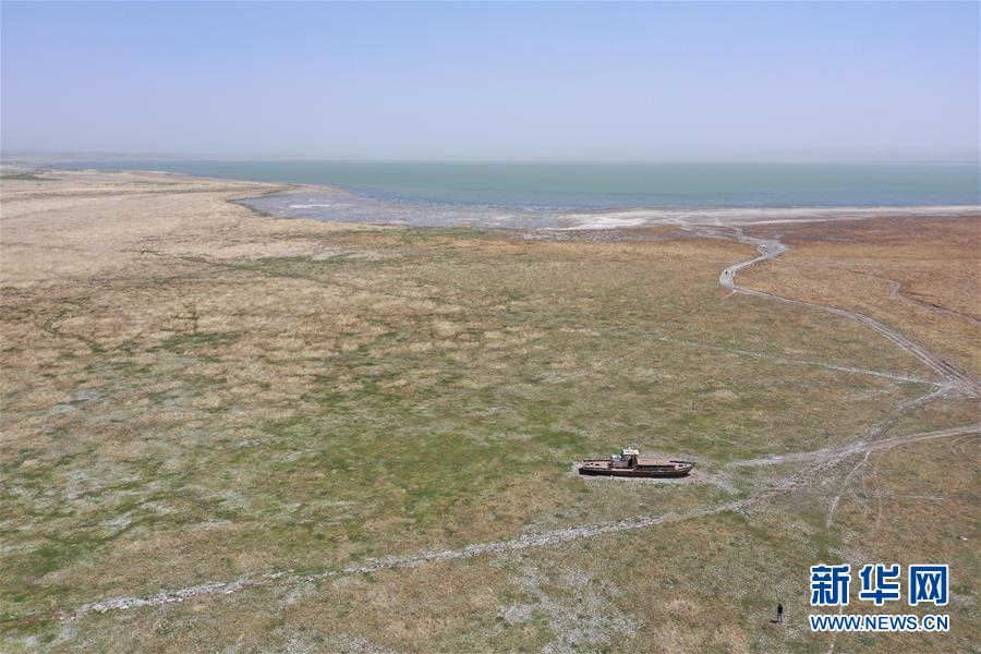 这是5月16日拍摄的岱海西岸,船所在位置曾经为湖面(无人机照片)。新华社记者 徐钦 摄