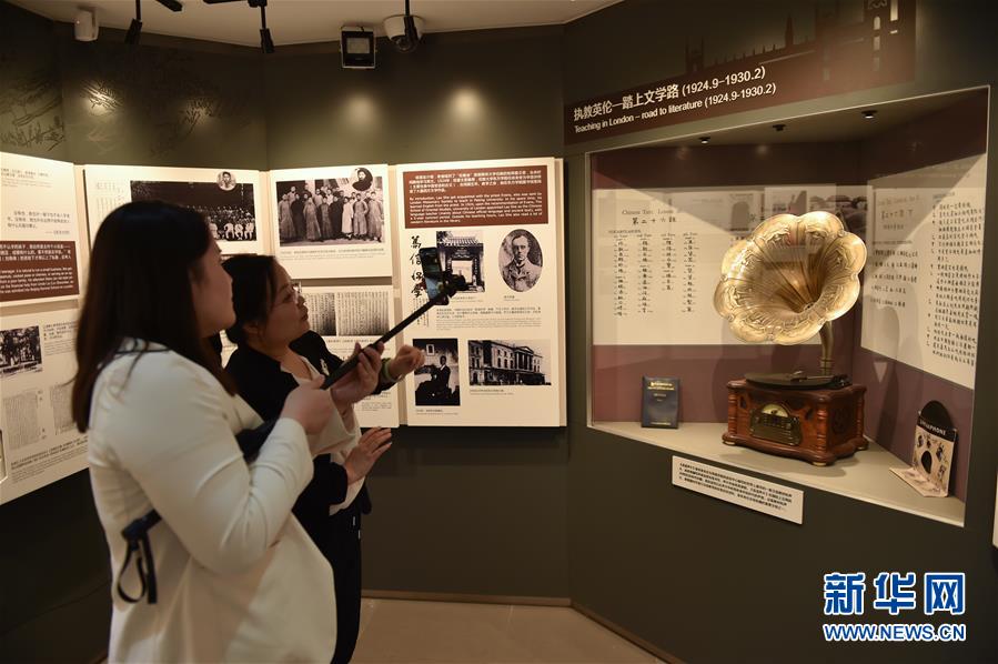 5月16日,老舍纪念馆馆员何婷(右)与主播在展厅内直播。 当日,位于北京市的老舍纪念馆举行直播活动,带领网友“云”探馆。记者从北京市文物局获悉,为迎接今年的国际博物馆日,北京市推出了十家名人故居纪念馆系列直播活动,包含北京鲁迅博物馆、老舍纪念馆、詹天佑纪念馆等。 新华社发(陈钟昊 摄)