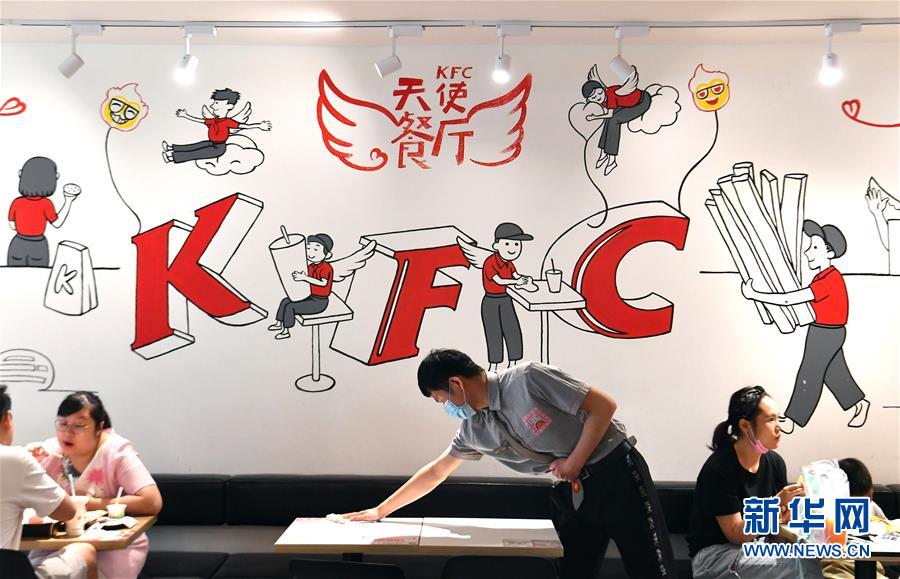 5月16日,郑继东在餐厅里工作。 今年31岁的郑继东自小患有听力障碍。2016年,大学毕业后的他通过郑州市残联介绍,进入当地一家肯德基天使餐厅工作,与其他特障人士一起成为了“天使员工”。在工作中,郑继东勤恳好学,经过几年的努力,已经通过了储备经理的面试,正式进入餐厅的管理层。“除了耳朵听不到,什么都能做。”郑继东在微信上写道。 设计专业毕业的郑继东爱好创作木刻画,通过作品来表达自己的想法和心情。最近,郑继东在家中创作了一幅以医护人员为主题的木刻画,并以“天使员工”的身份赠送给河南援鄂医疗队的“白衣天使”。 事业蒸蒸日上的同时,郑继东还收获了爱情与家庭。通过朋友介绍,他与妻子孙美红一见钟情,2018年结婚时,餐厅还特意为他们举办了一场特殊的婚礼。去年,夫妻俩的爱情结晶出生,是一个非常健康的宝宝。 “虽然耳朵听不见,但是我有勤奋的大脑和努力的双手。”郑继东在微信上写道,“‘你若精彩,老天自有安排’,我很喜欢这句话。” 新华社记者 李嘉南 摄