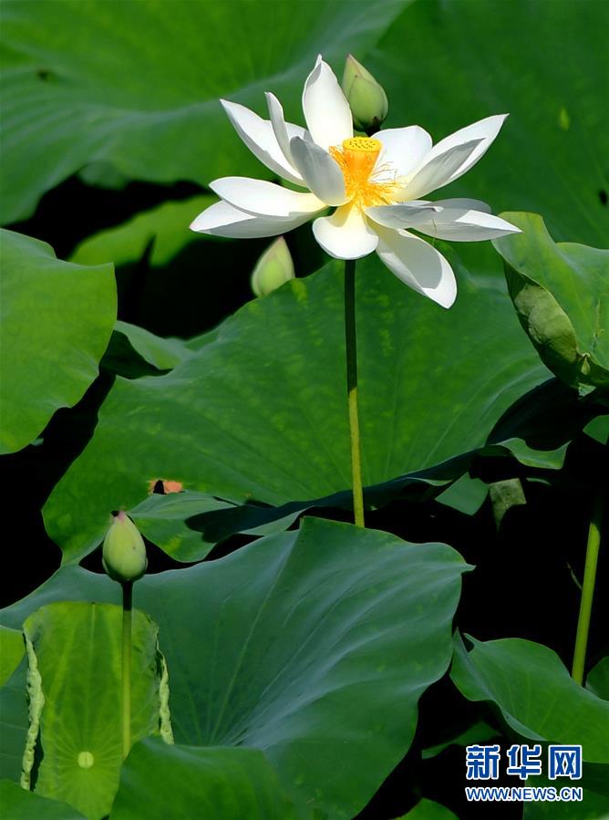 在福州茶亭公园荷花塘里,荷花盛开(5月16日摄)。 初夏时节,随着气温升高,福建省福州市各大公园荷塘的荷花次第开放,蜜蜂和鸟类在荷花丛中飞舞,为夏日增添了一道靓丽的风景。 新华社记者 魏培全 摄