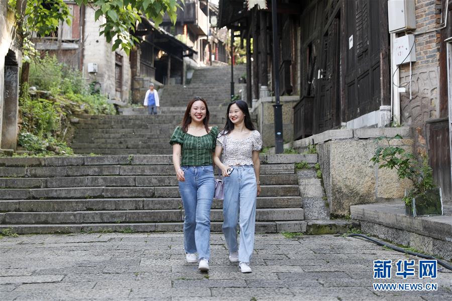 5月16日,游客在洪安古镇的古街上游玩。 初夏时节,位于重庆市秀山土家族苗族自治县境内的洪安古镇景色宜人。洪安古镇地处重庆、湖南和贵州的交界处,东与湖南省花垣县的边城镇隔河相望,南与贵州省松桃县的迓驾镇山水相连,有“渝东南门户”之称。 新华社发(黄伟摄)