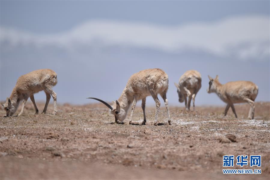 5月16日,一群藏羚羊在可可西里地区活动。 可可西里管理处五道梁保护站的监测显示,4月30日开始,藏羚羊陆续穿越青藏铁路五北大桥和青藏公路,向可可西里腹地迁徙,这标志着一年一度的藏羚羊迁徙产仔季全面开始。据了解,每年五月至七月上旬,藏羚羊从三江源、西藏羌塘、新疆阿尔金山等地前往可可西里卓乃湖集中产仔。 新华社记者 吴刚 摄