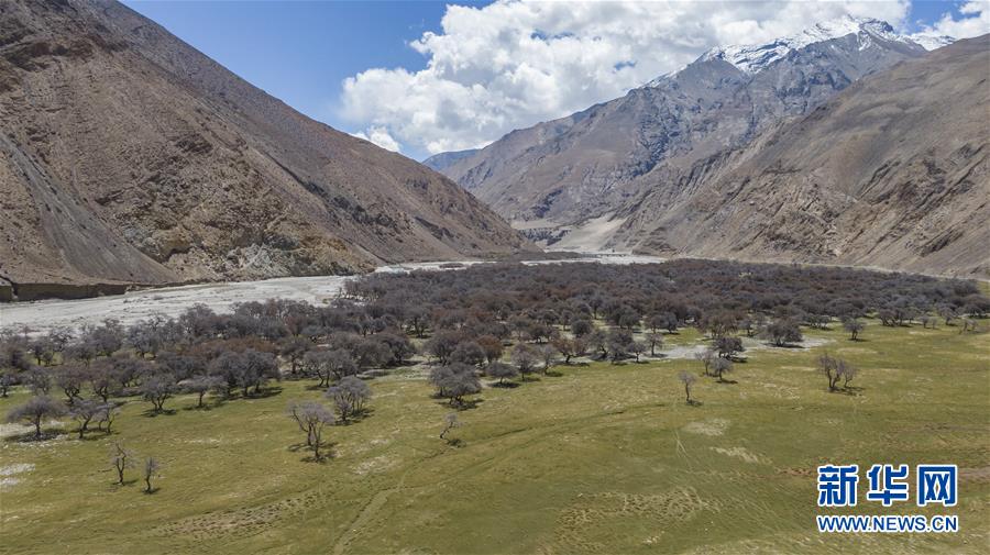 珠峰脚下的沙棘林(5月16日摄,无人机照片)。新华社记者 晋美多吉 摄