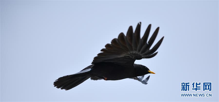 珠峰自然保护区内的黄嘴山鸦(4月29日摄)。新华社记者 晋美多吉 摄