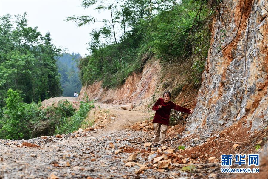 5月14日,齐敏在介绍村里后坝至烂坝修建产业路时遇到的地质难题。新华社记者 杨文斌 摄