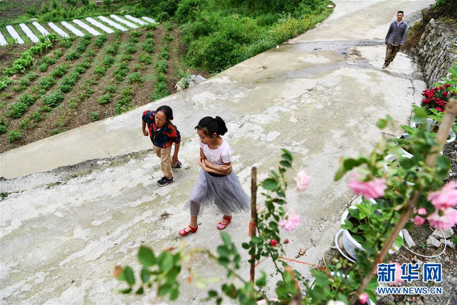 5月15日,齐敏(左一)和女儿走在村里。新华社记者 杨文斌 摄