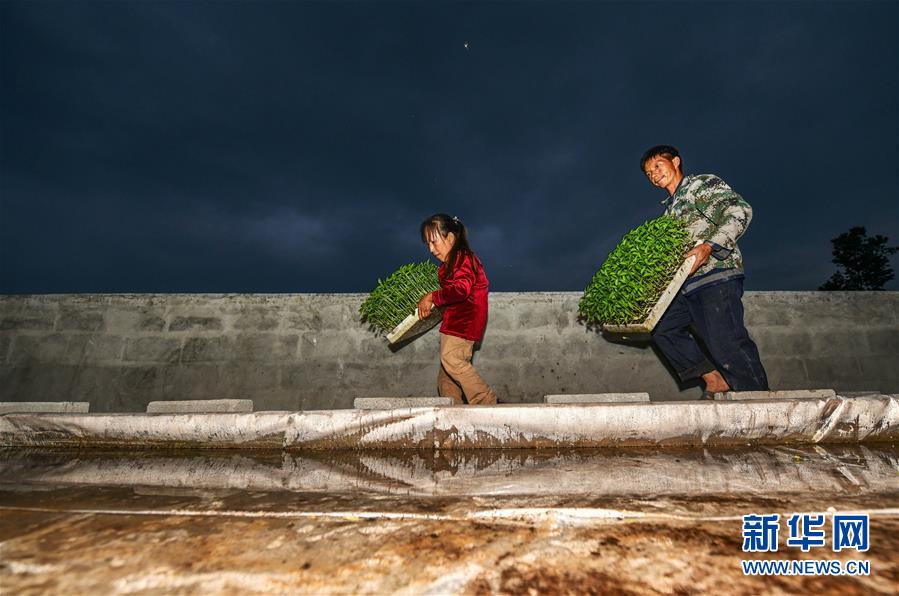 5月14日,齐敏和丈夫在搬运辣椒苗。新华社记者 杨文斌 摄