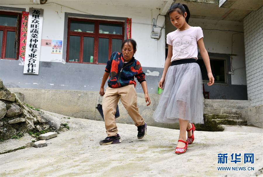 5月15日,齐敏(左)和女儿准备去喂猪。新华社记者 杨文斌 摄