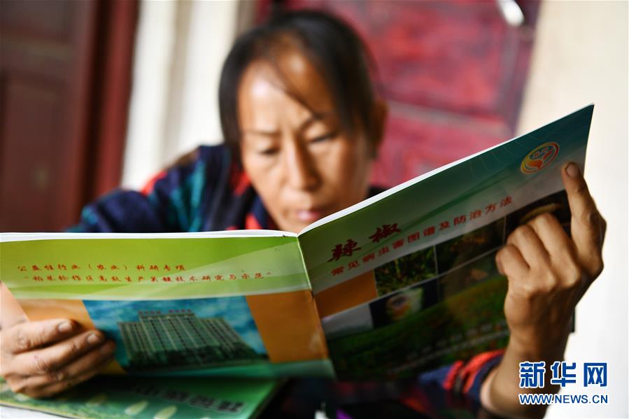 5月15日,齐敏在家里查阅辣椒种植技术相关资料。新华社记者 杨文斌 摄