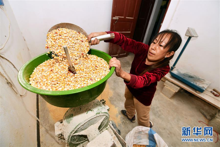 5月14日,齐敏在家里粉碎玉米粒。新华社记者 杨文斌 摄