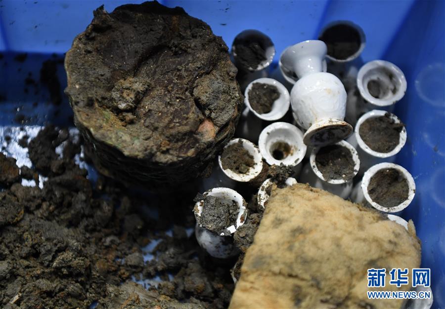 这是在广东阳江海陵岛的“南海I号”发掘现场清理出的瓷器(5月12日摄)。 新华社记者 邓华 摄