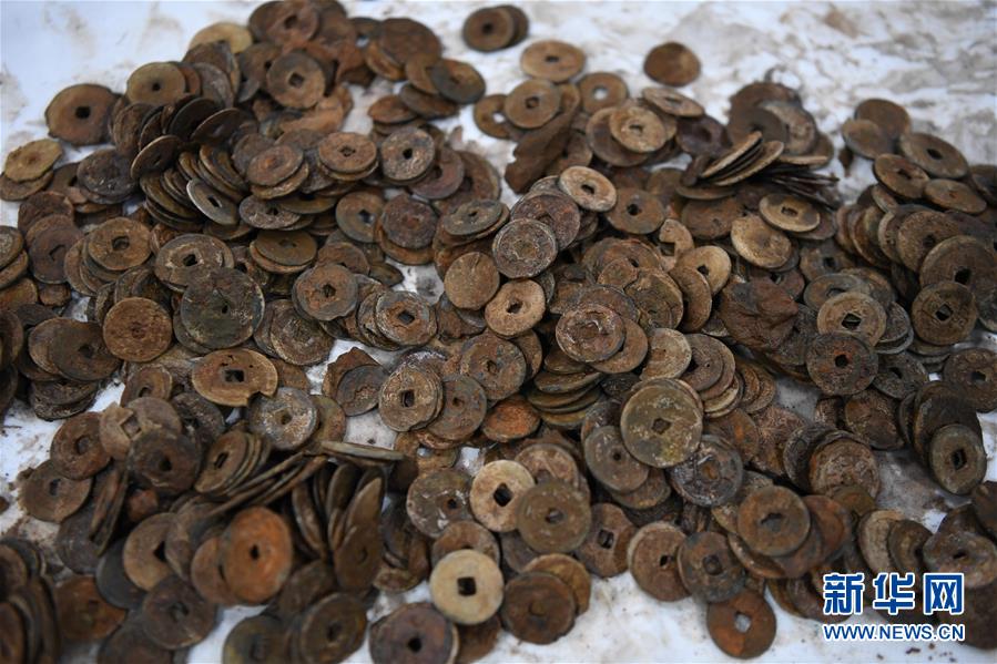 这是在广东阳江海陵岛的“南海I号”发掘现场清理出的古钱币(5月12日摄)。 新华社记者 邓华 摄