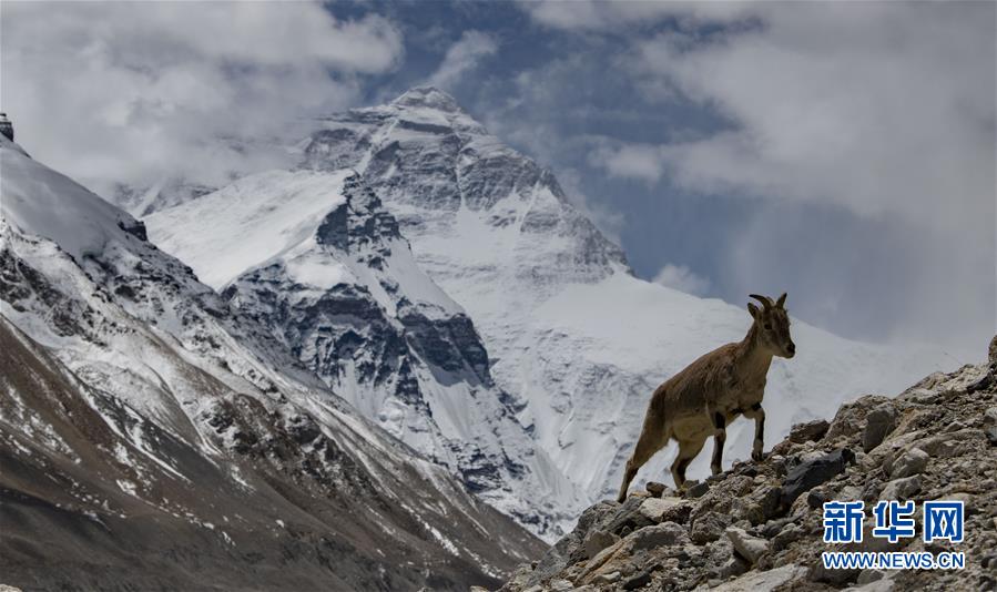 栖息在珠穆朗玛峰国家级自然保护区内的岩羊(4月29日摄)。 新华社记者 普布扎西 摄