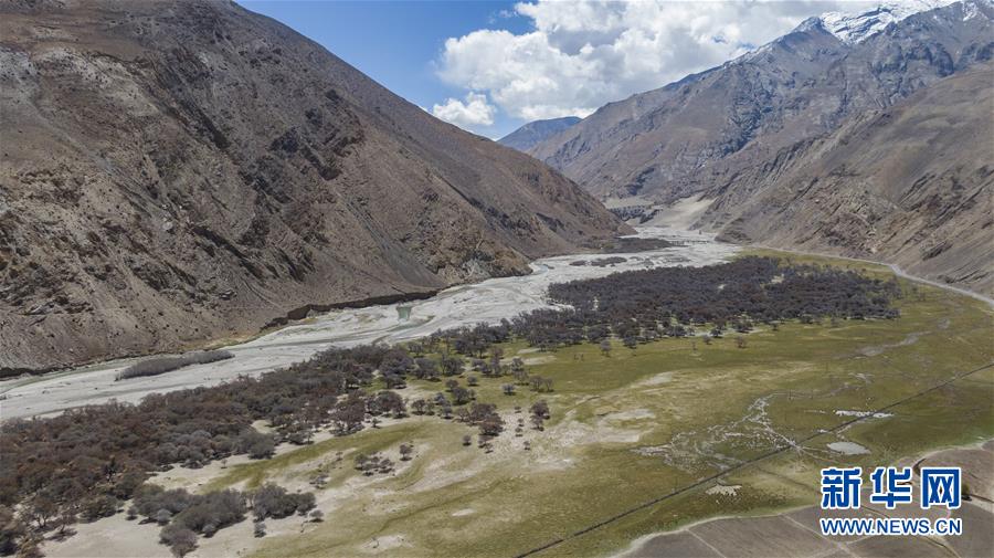 珠穆朗玛峰国家级自然保护区内的沙棘林和湿地(5月16日摄,无人机照片)。 新华社记者 普布扎西 摄