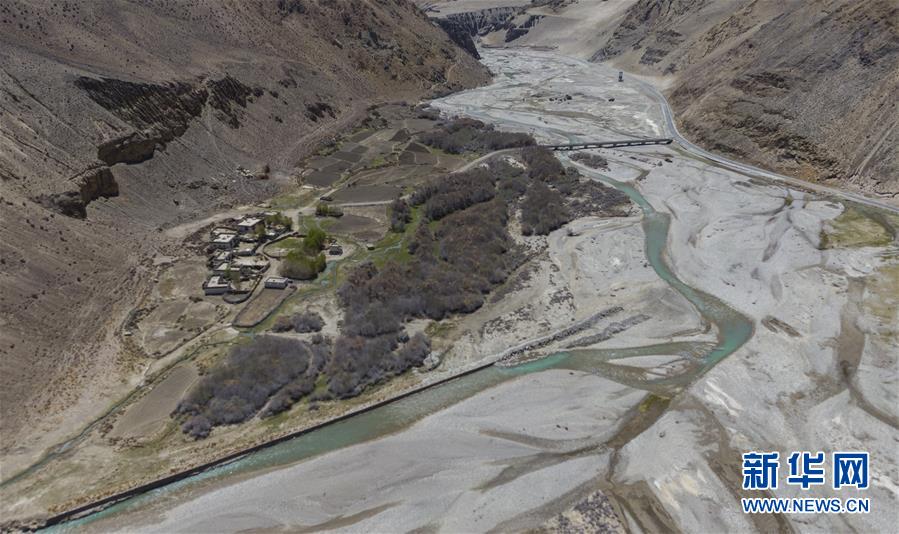 珠穆朗玛峰国家级自然保护区内的村庄与湿地(5月16日摄,无人机照片)。 新华社记者 普布扎西 摄