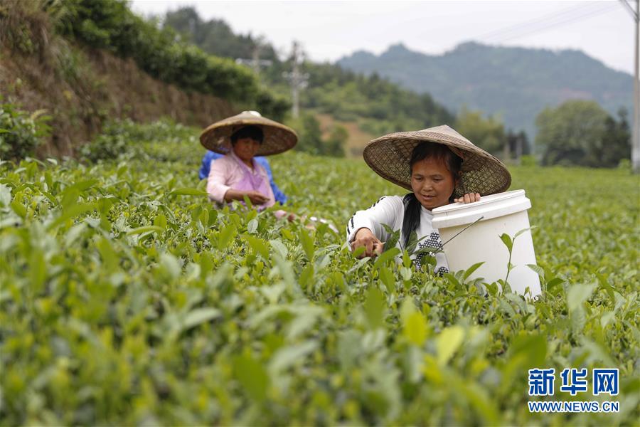 5月17日,村民在新院村茶叶基地采摘夏茶。新华社发(黄伟 摄)