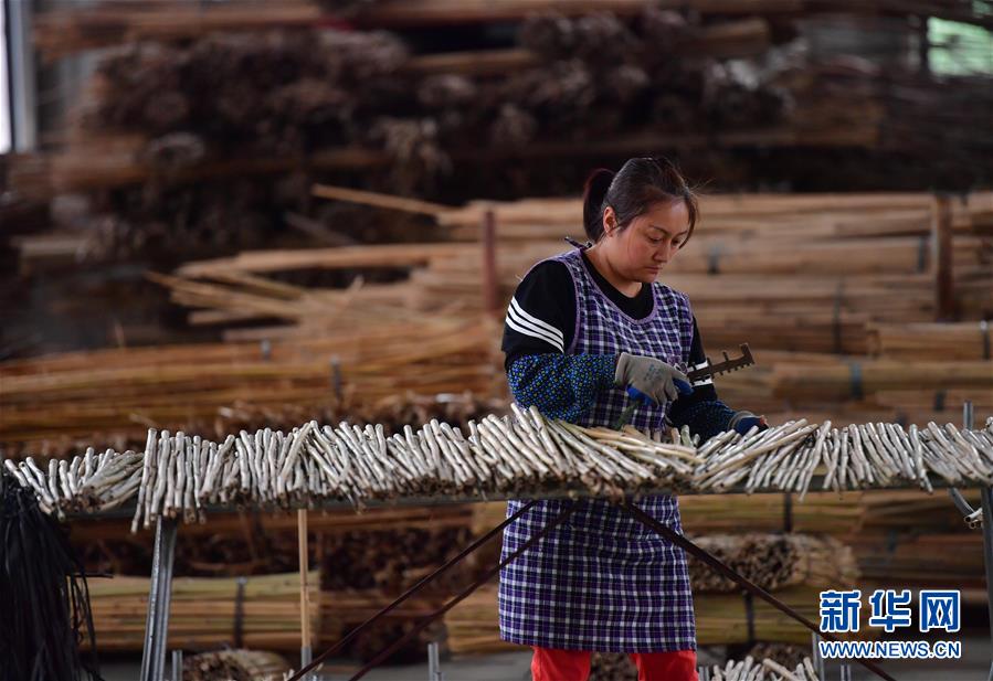 5月17日,在广西融安县农产品加工暨粤桂扶贫协作产业园一家竹制品企业的扶贫车间,工人在生产线上作业。新华社记者 黄孝邦 摄
