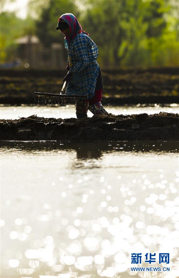 5月17日,在吉林省长春市双阳区徐家村,农民在水稻田间耕作。新华社记者 许畅 摄