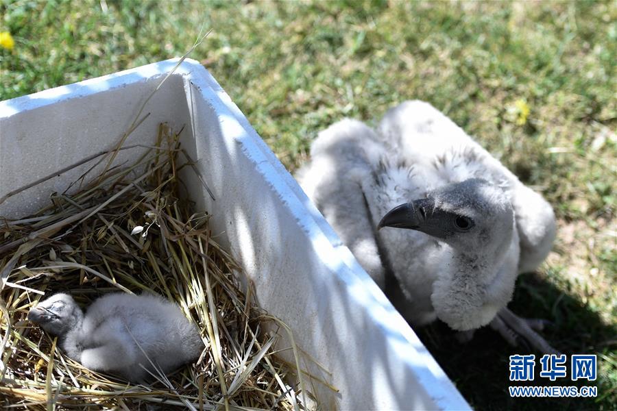 这是5月17日在西宁野生动物园拍摄的两只人工繁育的高山兀鹫。 新华社记者 张龙 摄