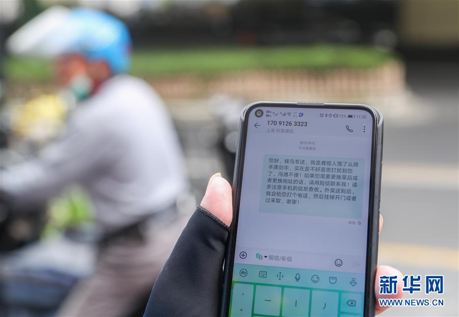 5月17日,龚剑华用手机发信息给顾客。 新华社记者 丁汀 摄