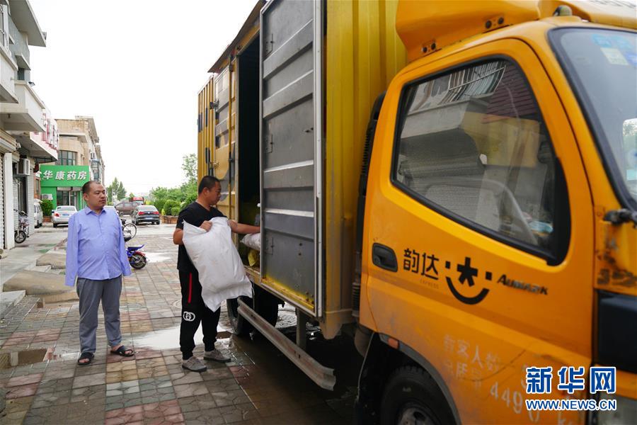 5月16日,赵杨(左)通过快递公司邮寄包裹。新华社记者 牟宇 摄