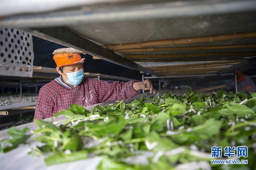5月17日,在江苏省海安市曲塘镇万杨村肆业蚕业农场,农民在管护春蚕。新华社发(徐劲柏 摄)
