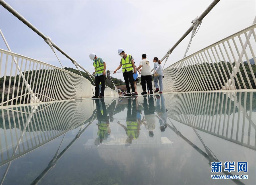 湖南张家界:峡谷玻璃桥 巡检保安全