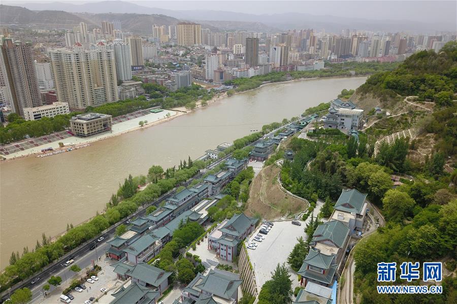 这是5月18日在兰州市城关区拍摄的白塔山公园及周边初夏景象(无人机照片)。新华社记者 范培珅 摄