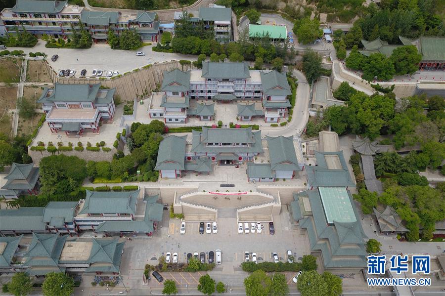 这是5月18日在兰州市城关区拍摄的白塔山下金城关文化博览园初夏景象(无人机照片)。新华社记者 范培珅 摄