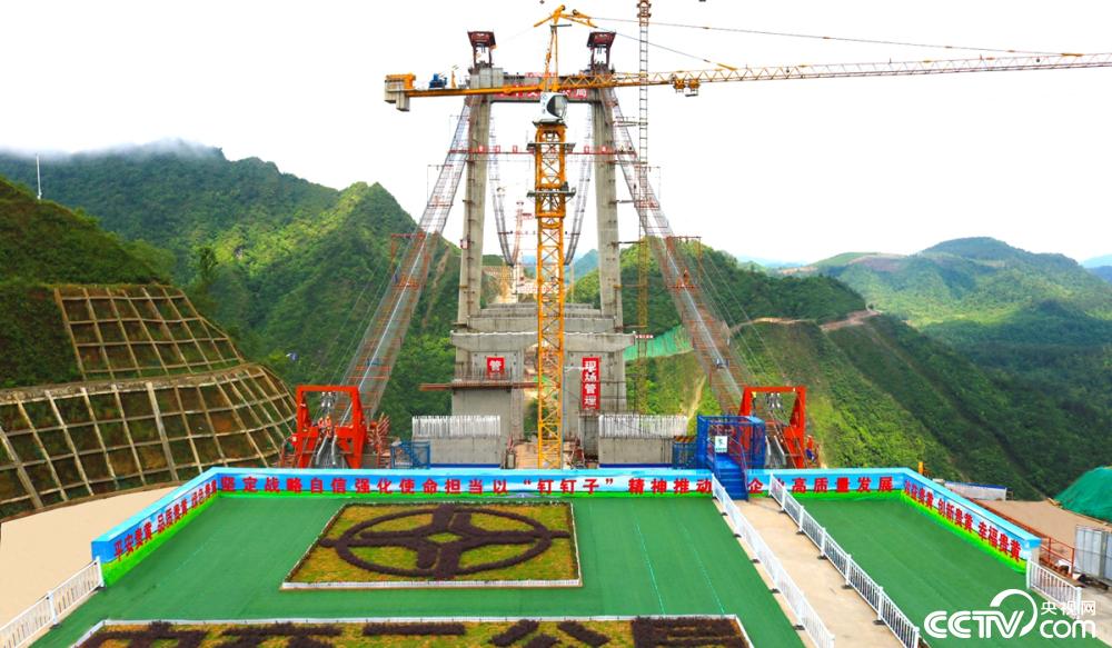 阳宝山特大桥上部施工作业现场,目前,大桥主缆开始架设,预计完成全桥主缆架设需要四五个月。