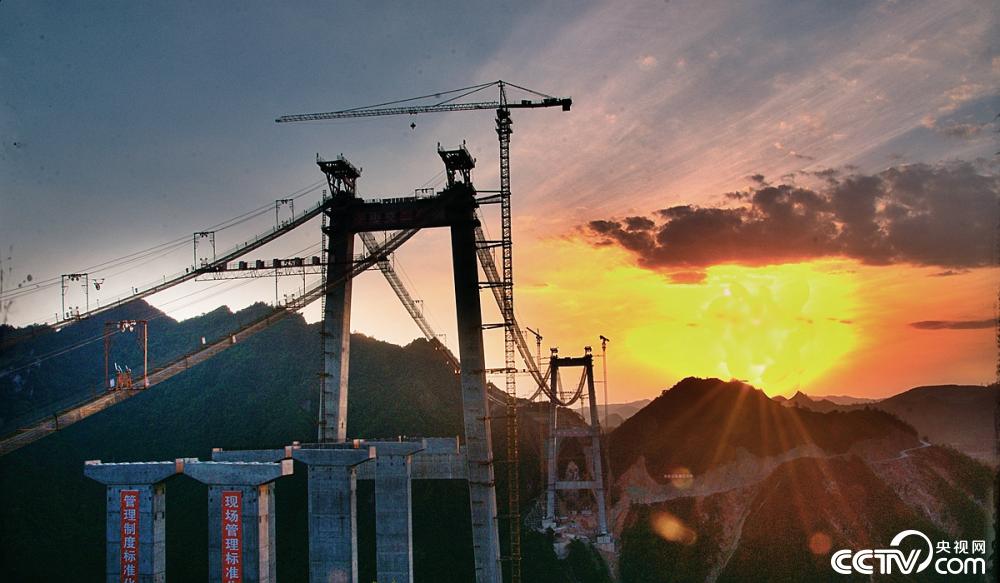 夕阳西下,阳宝山特大桥尽显雄伟气势。