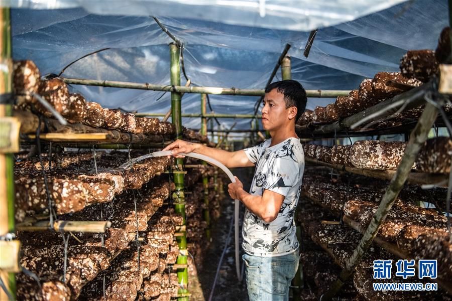 从江县往洞镇信地村群众为庭院种植的菌棒浇水(5月18日摄)。 黔东南苗族侗族自治州从江县是贵州省9个未摘帽的深度贫困县之一,食用菌是当地今年大力发展的扶贫产业。在贵阳农投集团等龙头企业帮扶带动下,这一“短平快”产业正迅速通过林下种植、社区工厂、庭院种植等模式发展起来,帮助解决当地近千名贫困群众的就业增收问题。 新华社记者 陶亮 摄
