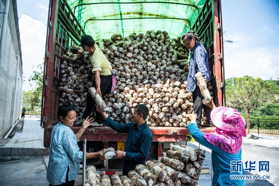 从江县贯洞镇南苑社区易地扶贫搬迁安置点群众在搬运菌棒(5月18日摄)。 黔东南苗族侗族自治州从江县是贵州省9个未摘帽的深度贫困县之一,食用菌是当地今年大力发展的扶贫产业。在贵阳农投集团等龙头企业帮扶带动下,这一“短平快”产业正迅速通过林下种植、社区工厂、庭院种植等模式发展起来,帮助解决当地近千名贫困群众的就业增收问题。 新华社记者 陶亮 摄
