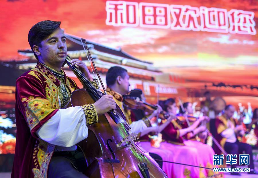 乐手在新疆和田夜市环湖店演出(5月16日摄)。 5月中旬以来,新疆和田气候渐暖,当地旅游经济逐步复苏,笑迎八方游客。和田的夜市逐渐热闹起来,吸引不少游客前来打卡,品尝美食,欣赏歌舞。 新华社记者 王菲 摄