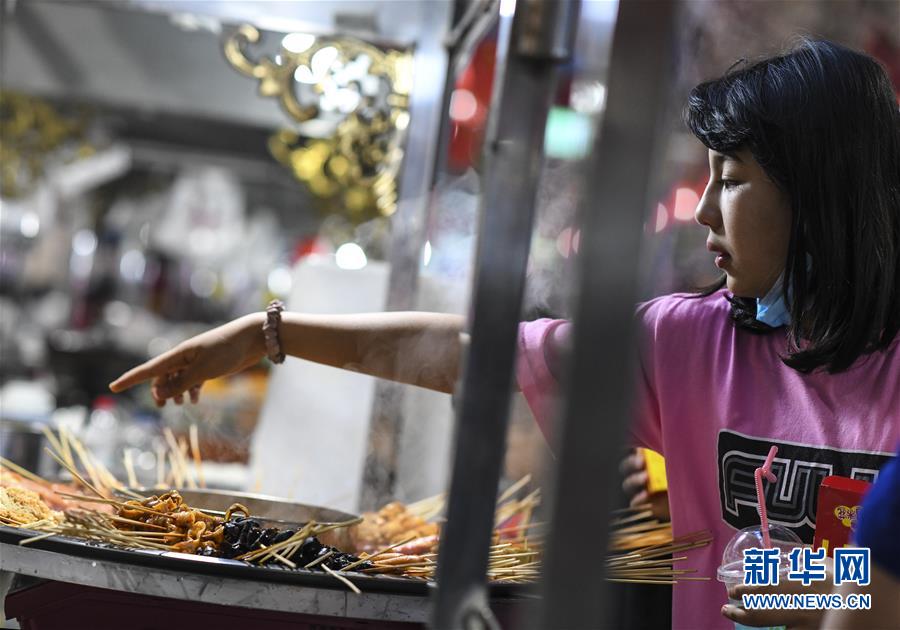 游客在新疆和田夜市选购麻辣烫(5月18日摄)。 5月中旬以来,新疆和田气候渐暖,当地旅游经济逐步复苏,笑迎八方游客。和田的夜市逐渐热闹起来,吸引不少游客前来打卡,品尝美食,欣赏歌舞。 新华社记者 王菲 摄