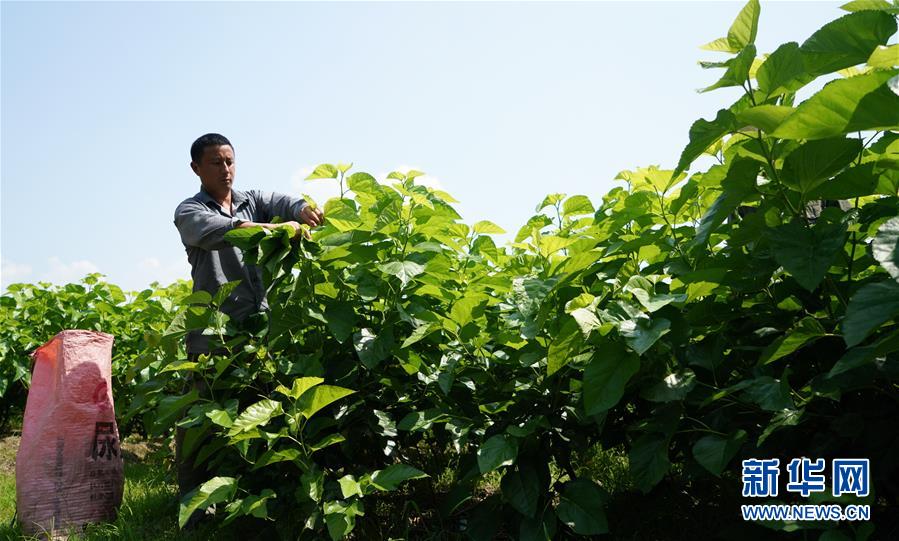 5月19日,乐安县招携镇坪头村村民在采摘桑叶。 近年来,江西乐安县依托生态优势,大力发展蚕桑产业。目前,全县共有桑园面积1.58万余亩,通过“龙头企业+协会(合作社)+基地+农户”的模式,带动全县1400多户贫困群众实现脱贫增收。 新华社记者 胡晨欢 摄