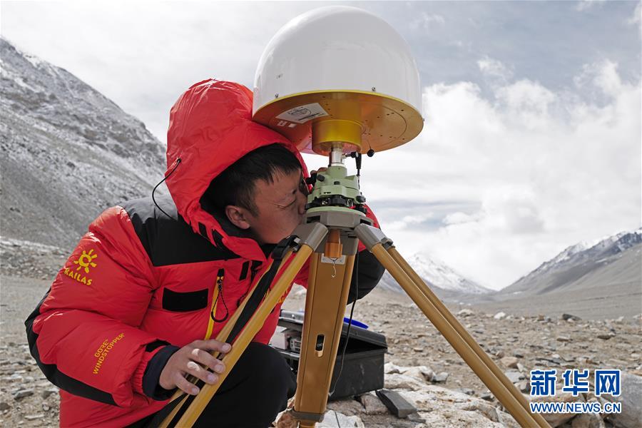 国测一大队队员在珠峰大本营附近测试设备(4月27日摄)。 新华社记者 普布扎西 摄