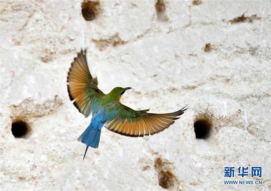 这是5月19日在厦门五缘湾栗喉蜂虎自然保护区拍摄的栗喉蜂虎。 近日,大批栗喉蜂虎来到厦门五缘湾栗喉蜂虎自然保护区栖息、繁殖。 新华社记者 魏培全 摄