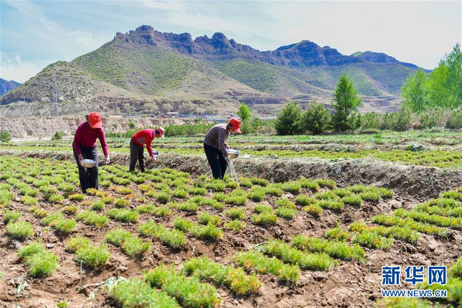宋家沟村村民在给树苗施肥(5月19日摄)。 新华社记者 曹阳 摄