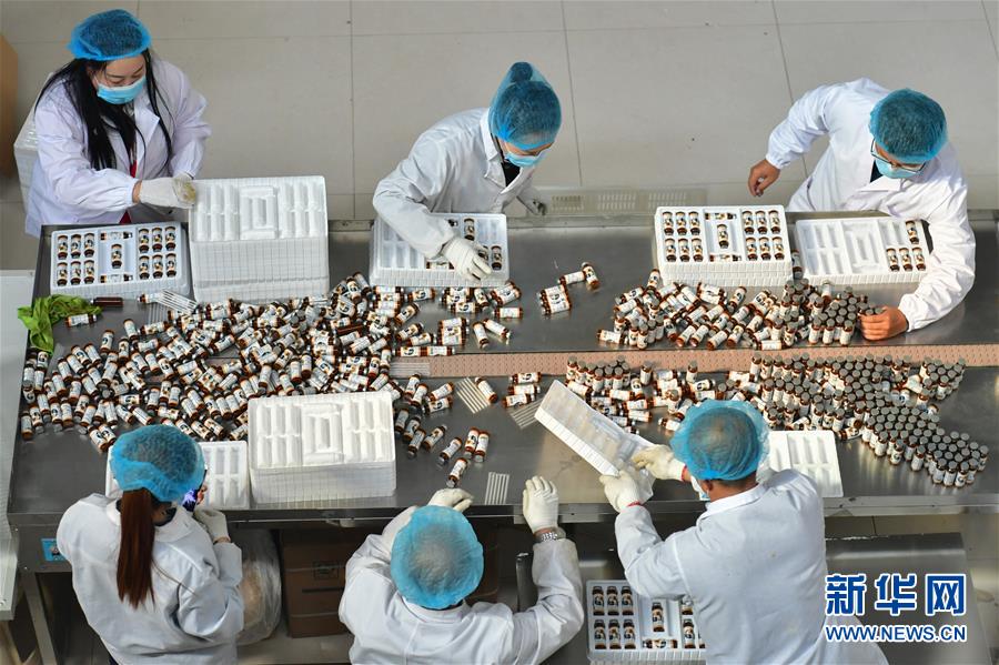 宋家沟村村民在食品加工厂包装沙棘饮料(5月10日摄)。 新华社记者 曹阳 摄