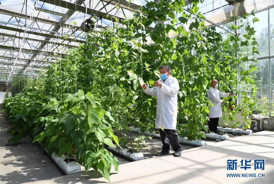 这是5月20日拍摄的中国农业科学院国家农业科技创新园无土栽培温室内景。 复工复产以来,在位于北京市海淀区的中国农业科学院国家农业科技创新园,工作人员通过采用无土栽培、LED人工光栽培等技术,生产黄瓜、西红柿、生菜等蔬菜,继续供应周边商场超市。 新华社记者 任超 摄