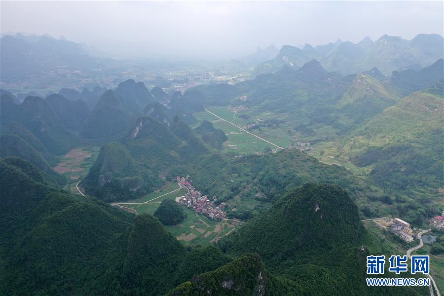 这是广西环江毛南族自治县下南乡的农村道路和民居(5月13日摄,无人机照片)。 毛南族是我国28个人口较少民族之一,广西壮族自治区环江县是国家扶贫开发工作重点县,也是全国唯一的毛南族自治县,全县有毛南族6.45万人,占全国毛南族总人口的约70%。2019年底,环江县贫困发生率降至1.48%。2020年5月,环江县退出贫困县序列。综合全国毛南族脱贫情况,毛南族已实现整族脱贫。 新华社记者 陆波岸 摄